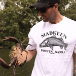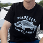 Boofin Barra - If you’ve ever had a Barra smash your lure like a runaway ute, you know the feeling... heart’s racing and the fight’s on. Featuring a bold print on a classic black backdrop, this design pays tribute to the heart pounding moment when a barramundi boofs at the surface.